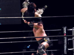 大鷲は花道からではなく西側からリングインするとMIKAMIを急襲(右写真)。