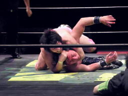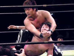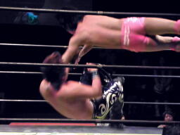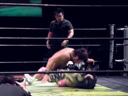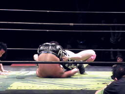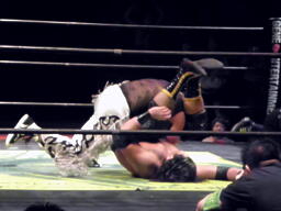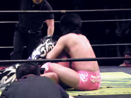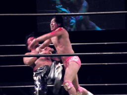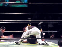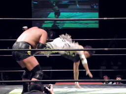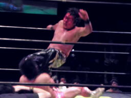 HARASHIMAギロチンドロップ(左写真)、カウント2。