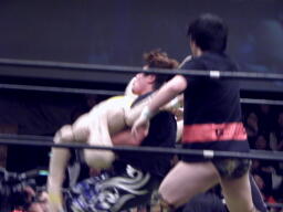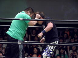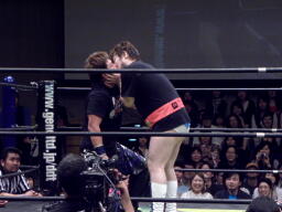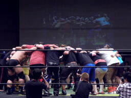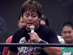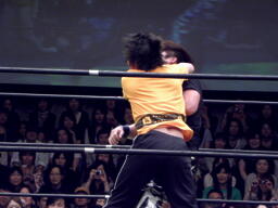 両国前の最後の後楽園ということでここで決起集会的なもの。やはりユニオンはDDTにとっては他団体か。正直関本が両国のメインというのは、どんなに防衛を重ねていても、たとえどんなに強くても荷が重すぎる。「両国のメイン何になったの?」と聞かれて「関本vsHARASHIMA。」って答えたらまあ普段DDT見てない人はまず「へ?」と言うだろうなあ・・・。石川だったら「へ?」と言われても「ユニオンのエースとDDTのエースの頂上対決だから」と言えるけど、関本じゃあなあ・・・。