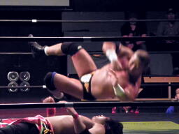 東郷DDT(左写真)、カウント2。
