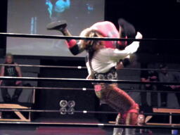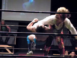坂井ヴァーディクト狙うが上がらず。MIKAMIが背後から坂井をスク〜ルボ〜イ(左写真)、カウント3。