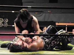 逆片エビ固め(右写真)、HARASHIMAロープ。