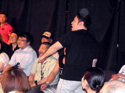 ウラノがセコンドのアントンに何か声をかけるとアントン「勝手がわからん!」(右写真)。ウラノ客席に座る。HARASHIMA「上げろ!」ウラノ「下ろせ!」HARASHIMAが焦れて場外に出るとウラノはリングに戻る。