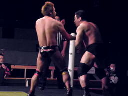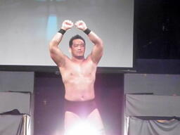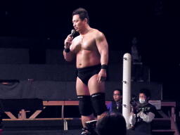 マイケル「これからDDTの強化人間として両国まで引っ張って成功に導くぞ!みんな、僕と一緒に両国まで突っ走ってみませんか?なかなかないですよね、大人になってみんなと一緒に突っ走ったりすること。」(左写真)