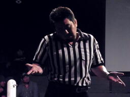 ノーロープマッチなんていつやるのかと思ったらメイン終了後の撤収を利用してだった。マイケルがロープの外されたリングに入場(右写真)。