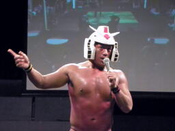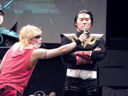 そこにヤゴウ・アズナブル(右写真)「なんだこのざまは!プロレス業界が大変なことになってるのに。DDTは粛清せねばならない。プロレス界を、DDTをオールドスクールに戻すためにエースパイロットを呼んできた。出でよ、エースパイロット!」お、今日出るのか。