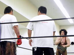 坂井は高森のグローブを外す。鬼木は鳥羽のグローブに当然疑問を抱くが、鳥羽は「総合なんかやったことないプロレスラーだ」ということでグローブを着けていいことに。