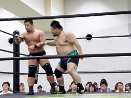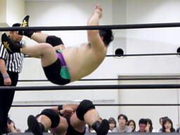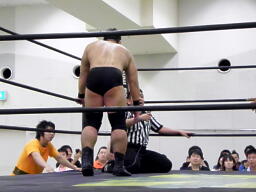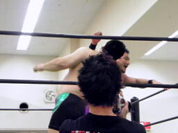 がむしゃらプロレスの世界で見ればいいのかも知れんが、DDTの興行では見たくないなあ、これ。しかも2人連続で。個人的には許容範囲外。