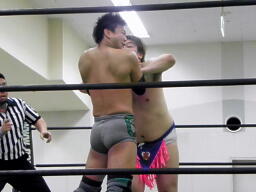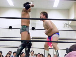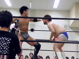 ナイトメア(右写真)、澤下から蹴ってブレーク。
