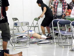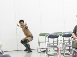 高尾を相手にルール実演(右写真)。高尾は思わず2でキックアウトしたためにもう一回やられる羽目に。