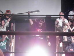 最前列テーブルの女性に「いい女だな」と手を出すタイガース(右写真)。始まったっ!