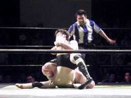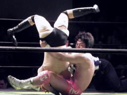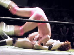 ヨシヒコは雪崩式不知火に切り返す(右写真)、カウント2。