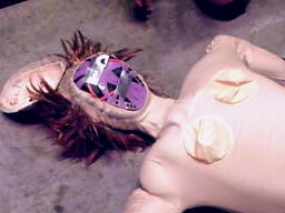 石井頭を踏みつけて逆片エビ(左写真)、ヨシヒコの体がぐにゃりと曲がるがギブアップはしない。石井根負けしてリリース。