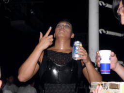 「火照ってきたぞー!」とついに上半身裸、下もビキニパンツに(右写真)。