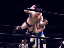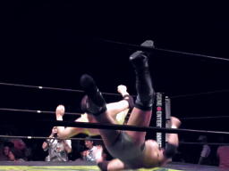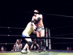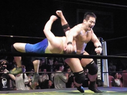 越中ブレーンバスター(右写真)、カウント2。5分経過。