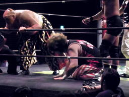 4人がヘッドロックに取る(右写真)、一旦ブレーク。