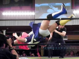 安部ブレーンバスター、内田ブロックして逆に持ち上げる(左写真)。