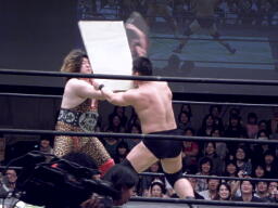 両者パネルで殴り合う(右写真)。これだけでも前代未聞。