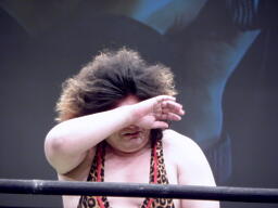 高木が歌詞の内容に抗議するが矢郷さんはリングに上がって高木にキック(右写真)。