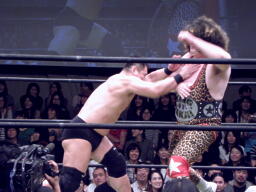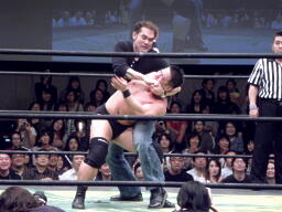 そして殺人コブラツイスト(左写真)。高木思わずギブアップするがこれは無効。