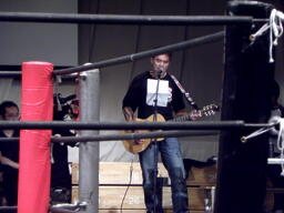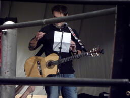 ギターも歌もうまい(左写真)。しかも曲は30分で作ったらしいが完全オリジナル。