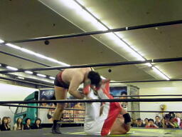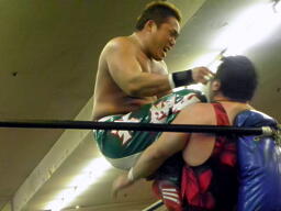 斗猛矢はダブルアームスープレックス(右写真)、