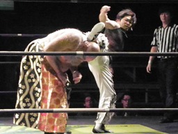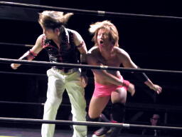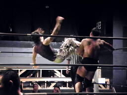 鳥羽ジャンピングハイキック(右写真)、MIKAMIスク〜ルボ〜イ、カウント2。