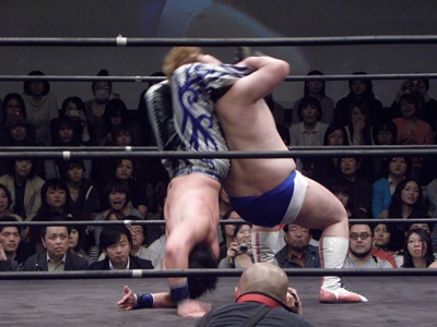 マッスルスープレックス(左写真)。マッスル坂井の置き土産か・・・。