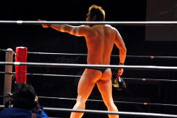 小鹿入場、マイケルに「汚いパンツ脱ぐな」と警告(左写真)。