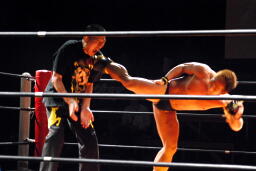 邪道がマイケルをクロスフェース・オブ・JADOに捕え、ゴールデンラヴァーズを呼ぶように命令(右写真)。しかしケニーはすでにカナダに帰っている。マイケル「飯伏さ〜ん!!!!」無反応。邪道絞る。マイケル「飯伏さーーーーーーん!!!!」無反応。