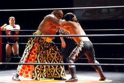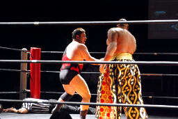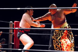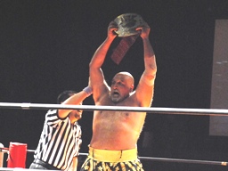 アントンオクラホマール、体勢崩れるがエビ固めに(左写真)、カウント3。
