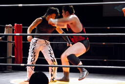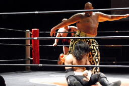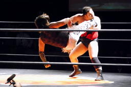 MIKAMIキックしてミッキーブーメラン、佐々木かわす(右写真)。
