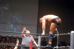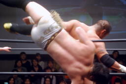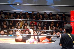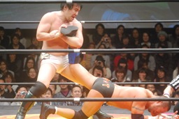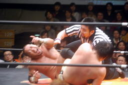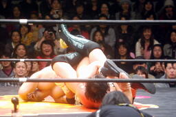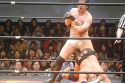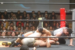 投げっ放しジャーマン(右写真)から片エビ固め、カウント2。