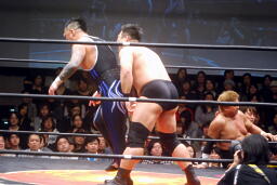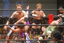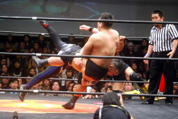 天龍高木に逆水平(左写真)、入江にはラリアット。