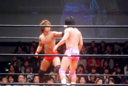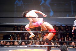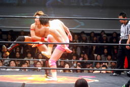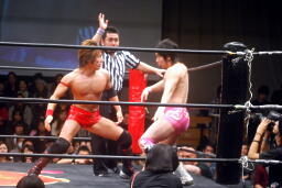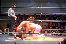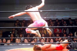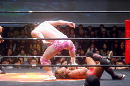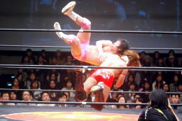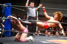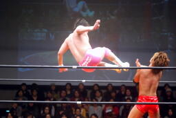 石井ロープに飛ぶ、高尾アームドラッグ(左写真)、石井ヘッドシザーズでブレーク。