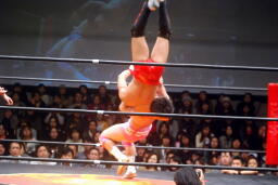 ブレーンバスター(右写真)、カウント2。
