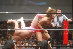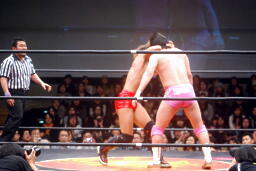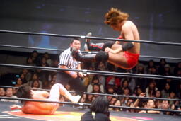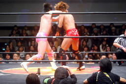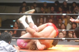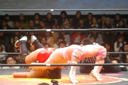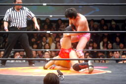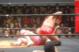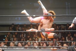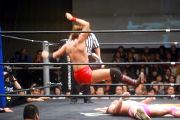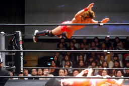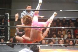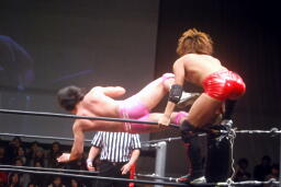 高尾コーナーに上ってマッドスプラッシュ(右写真)、カウント2。