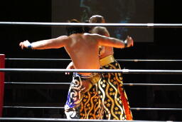 大鷲は乗る(左写真)。場外に蹴り出して星誕期にタッチ。5分経過。