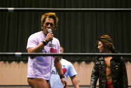 佐々木大輔が高尾にストンピング(右写真)。高尾と松永はマイケルを置いて逃げる。