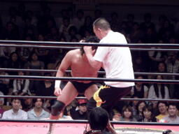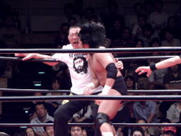 小鹿がGENTAROをロープに振ろうとする、GENTAROブロック(左写真)。