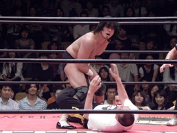 GENTAROは小鹿の足に自分の足を絡ませると回転してシャープシューターに(右写真)、これは小鹿耐えられずギブアップ。