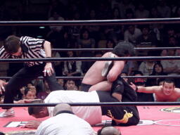 4の字に行くが小鹿は首固め(右写真)、カウント2。