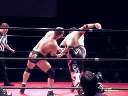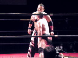 GENTAROハンマーロックに、ねじ伏せる(右写真)。東郷にタッチ。