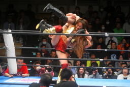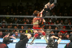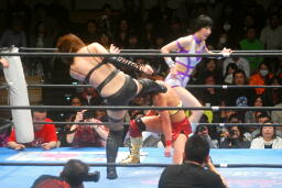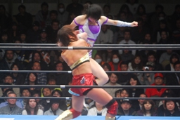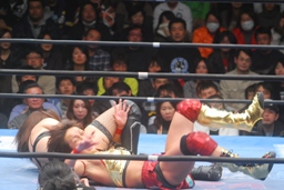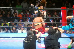 真琴無気力キック(左写真)、アジャラリアット、カウント2。