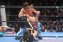 マリーンズと大石がダブルのガットショットから逆トータル・イリミネーション(右写真)。