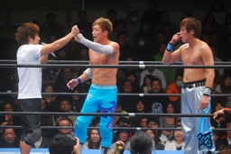真霜を勧誘するが真霜は関根とのタッグを選択(右写真)。