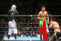 トウナイ「俺は2日前のタイトルマッチで負けて、今日の試合も負けた。俺の中で俺なりのプロレス理念を持って今まで戦ってきたよ。でも何一つ結果が出ねえんだよ。俺はもう何が正しいかわかんねえんだよ。」(右写真)