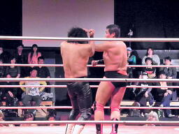 東郷エルボースタッブ、GENTAROとパンチの打ち合い(右写真)。東郷ドロップキック。橋にタッチ。