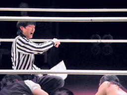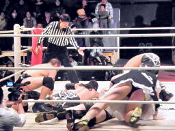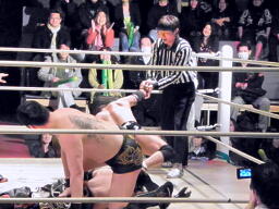 光留が持ってきた封筒をめぐって争奪戦(右写真)。光留奪い返しレフェリーに渡す。その中の紙には「NATO」。