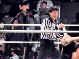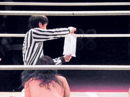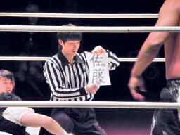 そしてレフェリーに渡す(右写真)。しかし中の紙に書いてあったのは「国母」。旬なネタだ。